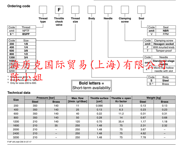 2.节流止回阀:代码F固定不变。