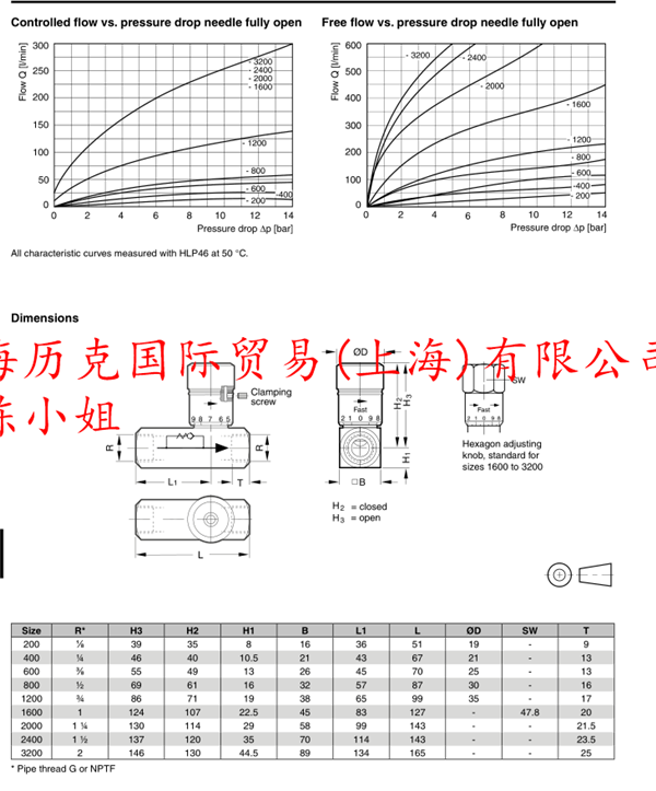 9F400S派克管式流量控制阀F系列技术参数: