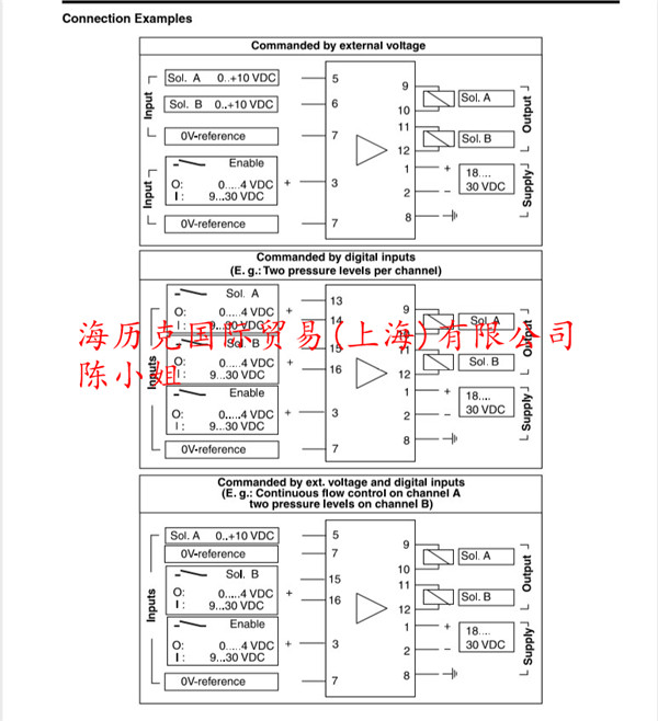 Parker派克比例阀电子模块PCD00A-400-30接线图: